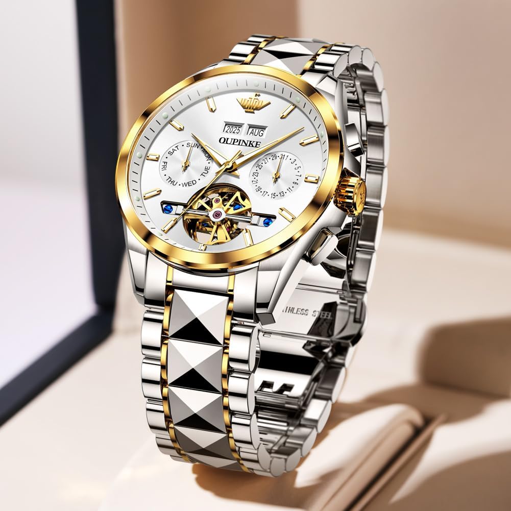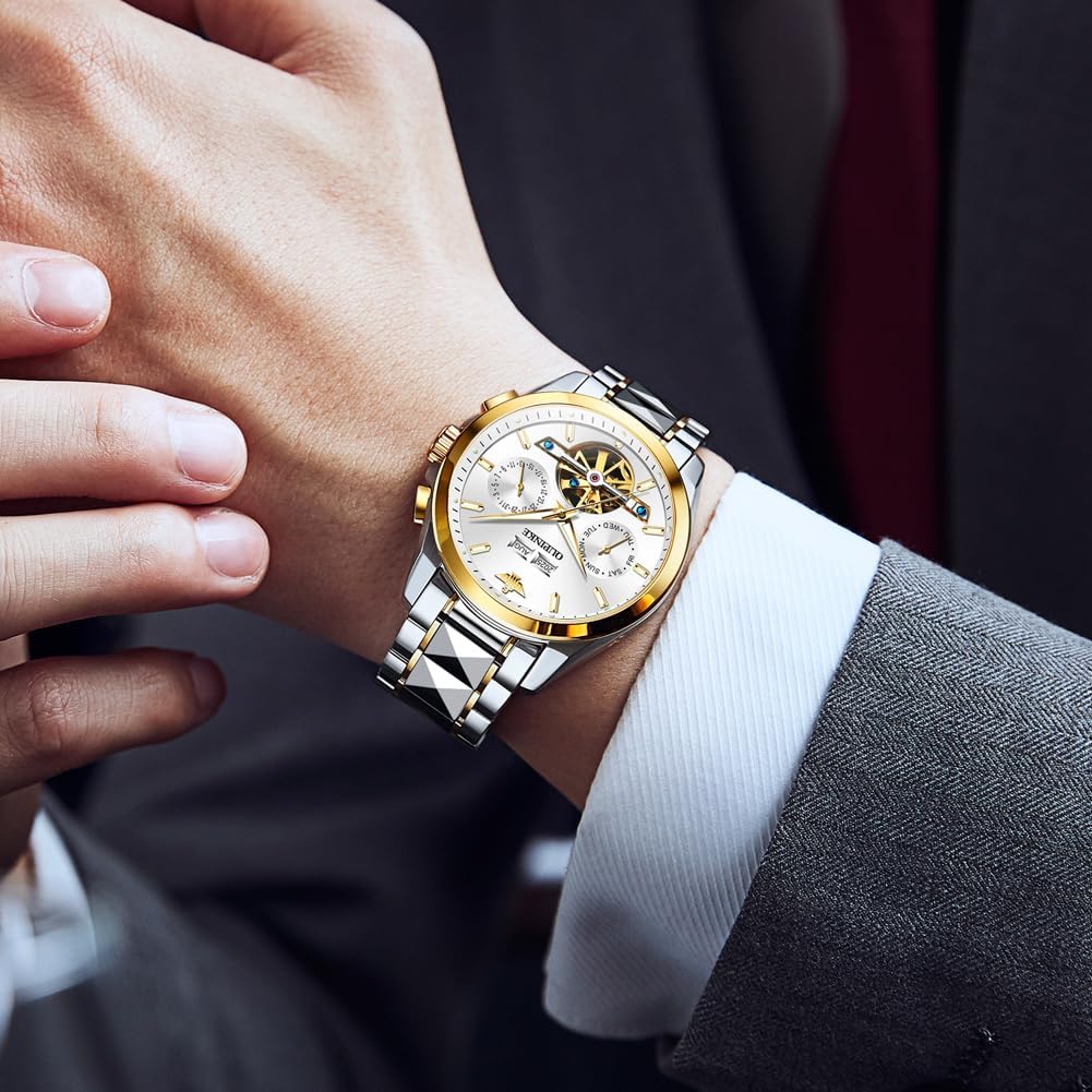 Automatic Men Watches Mechanical Luxury Self Winding Wrist Watch Multi Calendar Stainless Steel Waterproof Wrist Watches for Men Is Discontinued By Manufacturer …