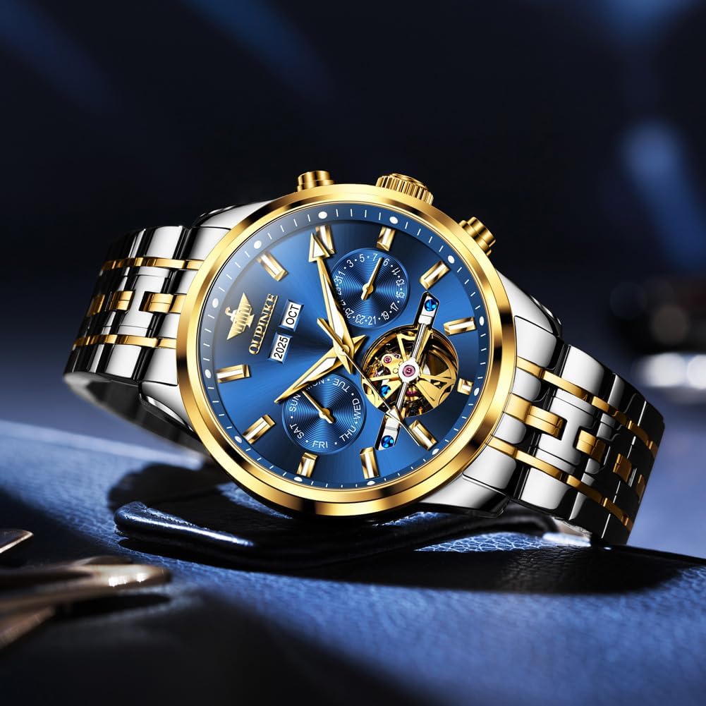 OLEVS Automatic Men Watches Mechanical Luxury Self Winding Wrist Watch Multi Calendar Stainless