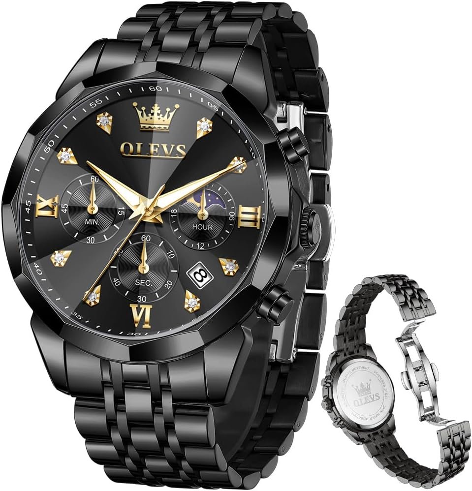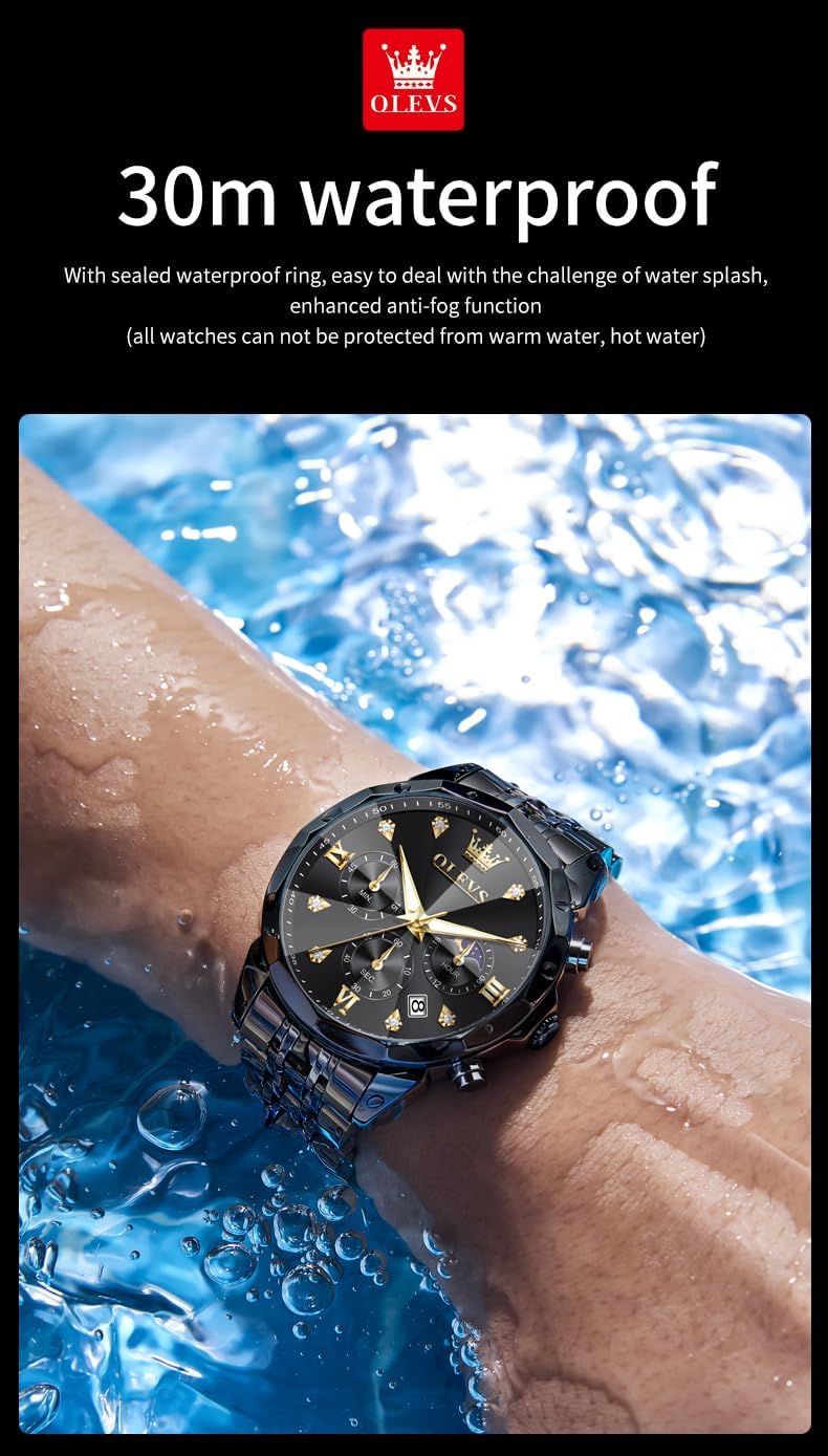OLEVS Watches for Men Luxury Diamond Casual Large Dial Watches Stainless Steel Waterproof Business Dress Analog Luminous Date Mens Watches