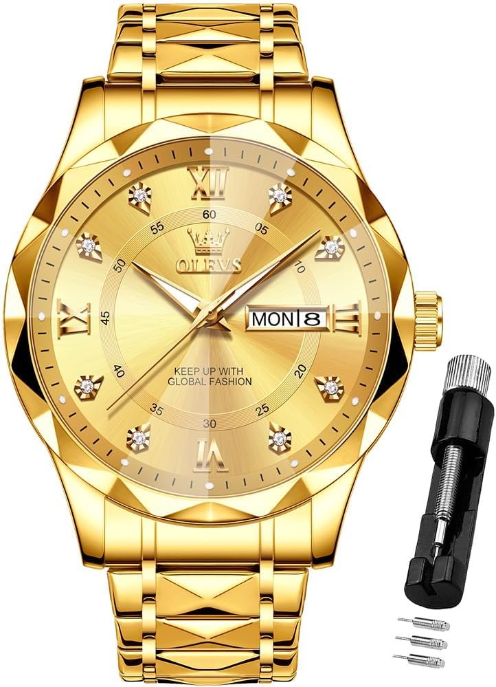 OLEVS Watches for Men Luxury Diamond Casual Large Dial Watches Stainless Steel Waterproof Business Dress Analog Luminous Date Mens Watches