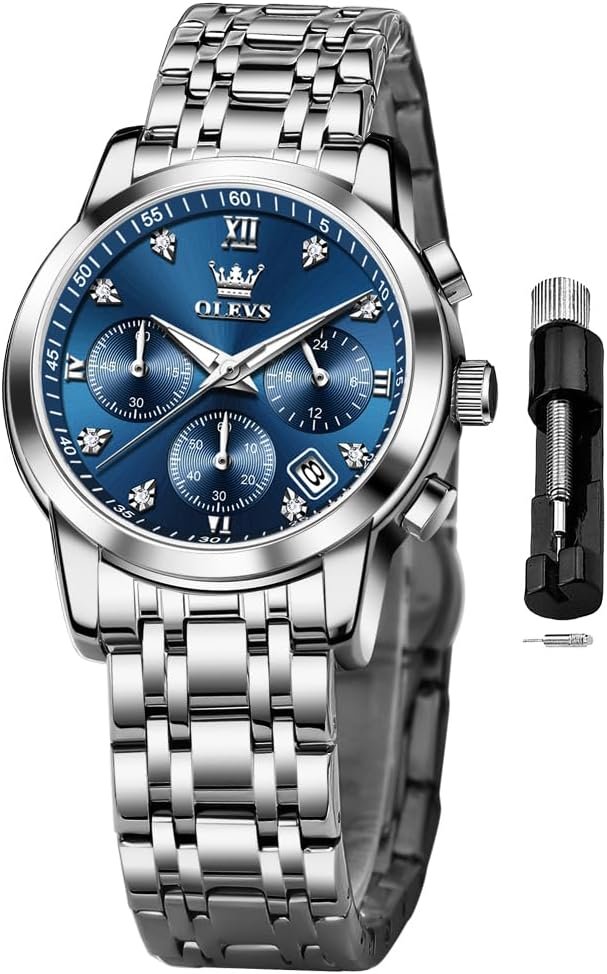 OLEVS Women Watch Multifunctional Two Tone Watch Fashion Business Analog Quartz Ladies Watch Stainless Steel Waterproof Diamond Watch for Women