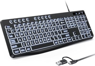OMOTON Large Print Backlit Keyboard with Type-C and USB A Dual Interface, Wired Computer