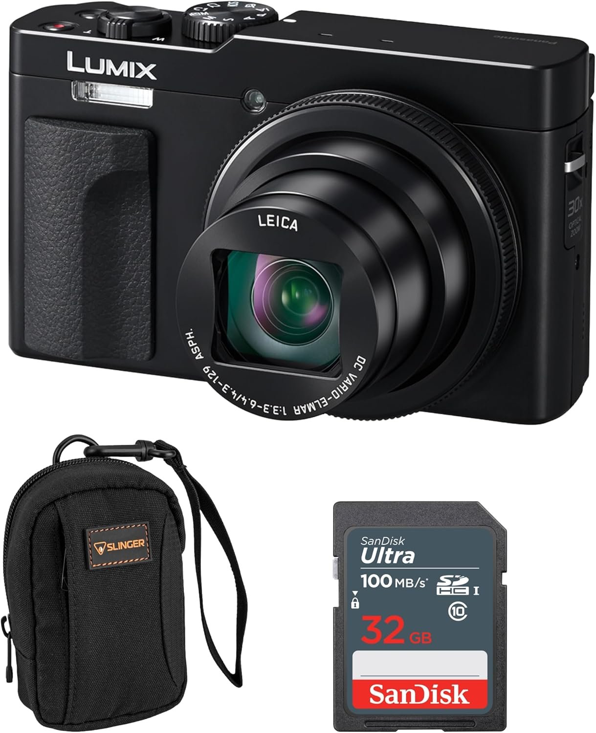 Complete Bundle for Effortless Shooting – Includes a SanDisk 32GB Memory Card, a Slinger Alpine Camera Bag, a battery, USB cable, hand strap, and Panasonic’s 3-Year Limited Warranty.