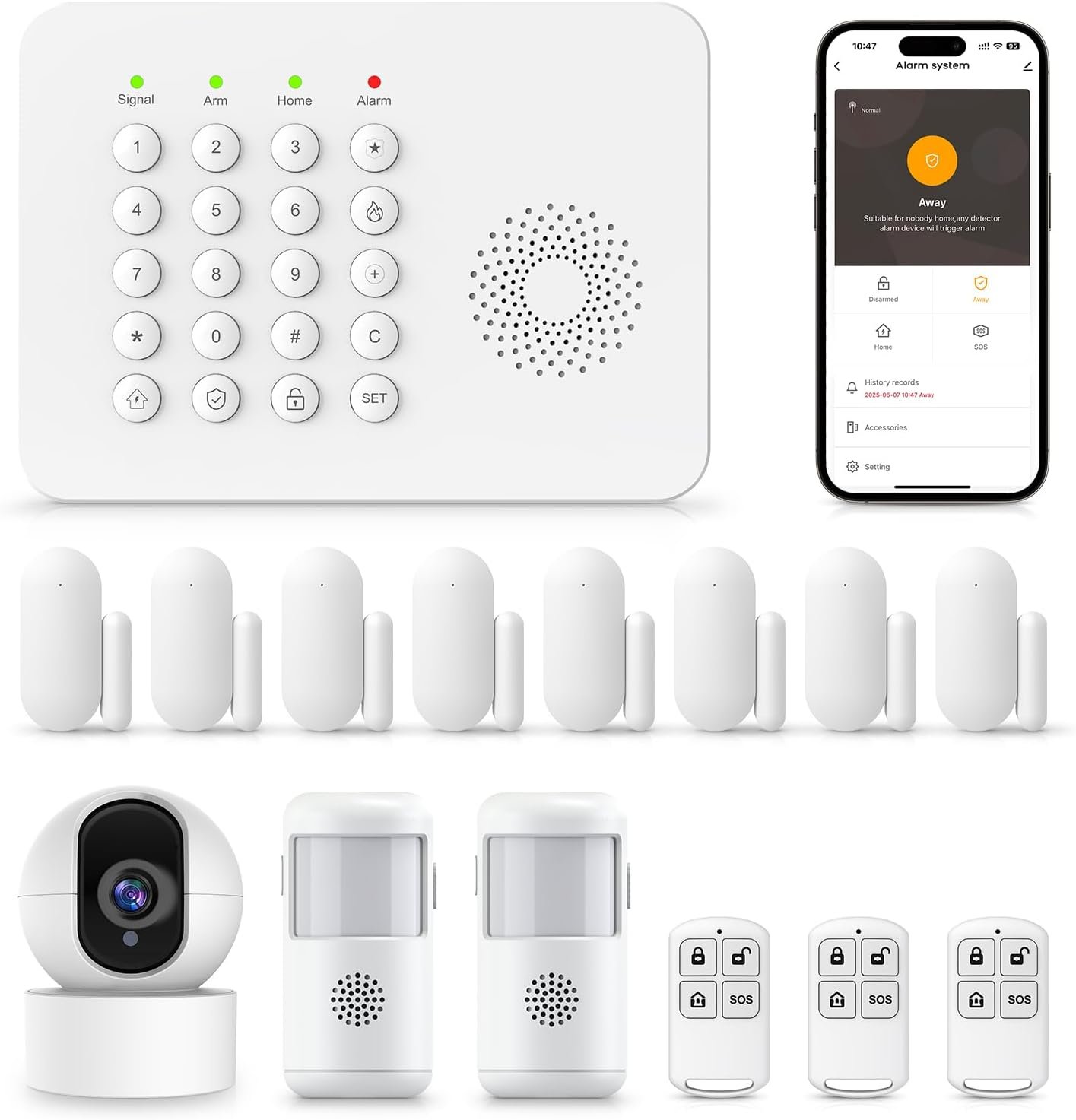 PGST Home Security System,DIY Wireless Home Alarm System for Home Security with Door Motion Sensors,Smart Keypad,Remote,No Subscription Fee (8 Contact Sensor + 2 Motion Sensor + 1 PTZ Camera)