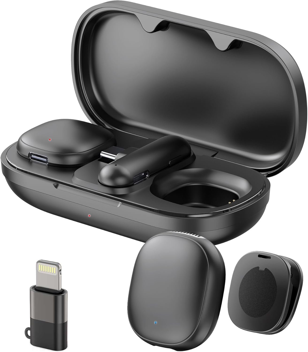 Phone Microphone for iPhone: Plug the receiver into your cellphone, then turn on the mini mic. It will automatically pair and work, no extra settings. The wireless lapel microphone USB C compatible with iPhone 15 16 Android etc.Enjoy the cordless AI microphone for video recording