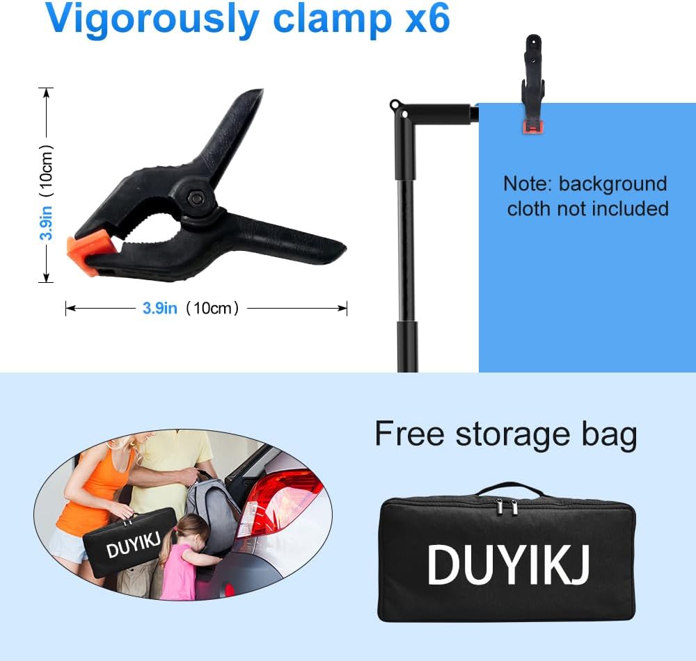 【Secure Mounting】Holds canvas, muslin, photo clamps provides comfortable & strong grip to prevent backdrop slip-out. The stand kit is very lightweight and portable after being put into the carry bag, and will not take up too much space