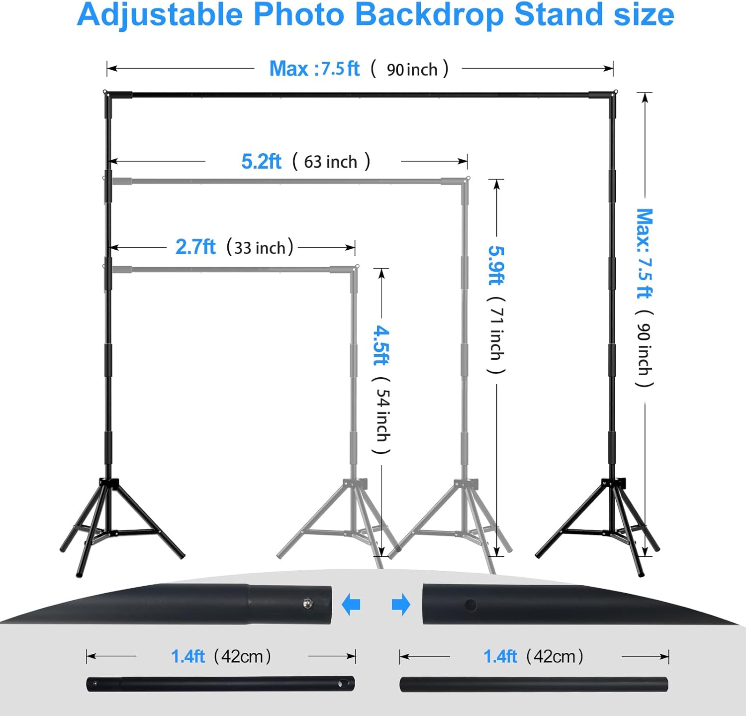 【Portable Backdrop Stand】Consists of professional heavy duty photography tripod stands and thick pipes.The tripod backdrop stand provides stability for the background stand.Photoshoot backdrop stand kit support green screen backdrop, or theme photography backdrop