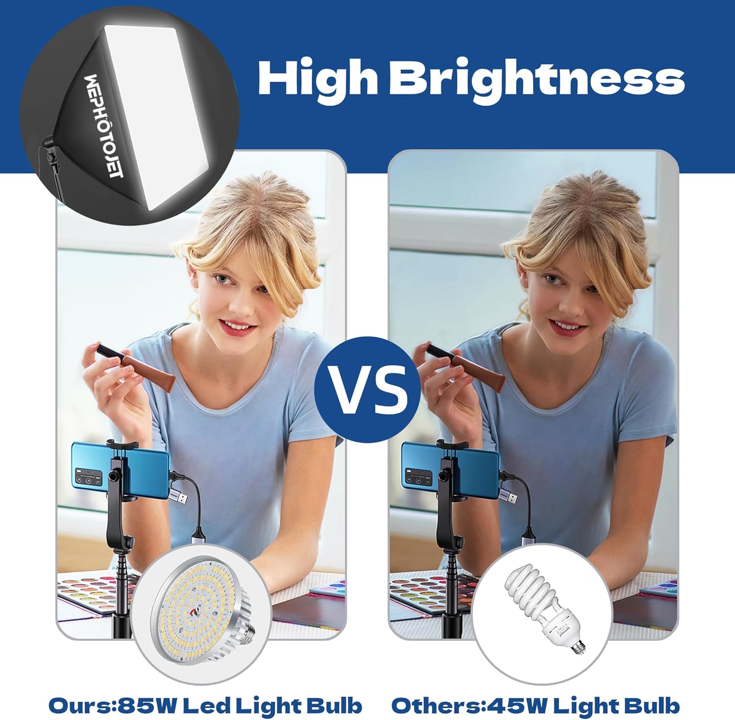【Professional LED System】Enjoy optimal color rendering with 2 x 85W LED lights and 2 x 45W bulbs that provide consistent, bright illumination for your soft box lighting set while maintaining low energy consumption