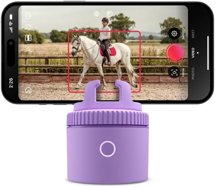 Pivo Equestrian Pod Standalone Auto Tracking Phone Holder, Face, Body & Horse Tracker, 360° Rotation, 6 Speed, Stand for Video Recording (Purple)