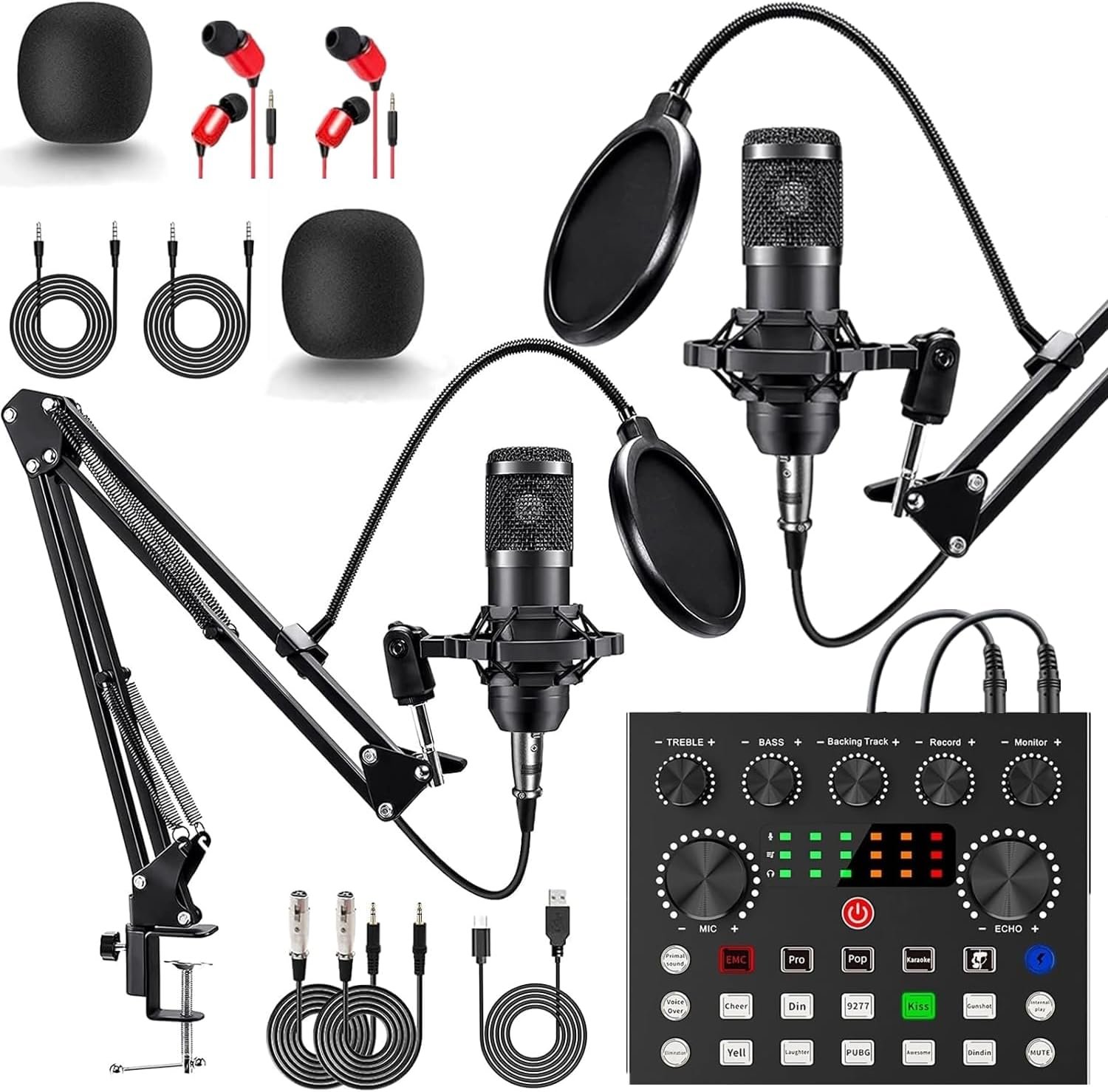 🔥【Upgraded Podcast Equipment Bundle for 2】The podcast microphone bundle is equipped with 2 podcast microphones and 2 microphone hanging arm clippers, newly-designed All-In-One V8s sound card. This studio equipment integrates audio interface into one operation panel, offers rich functions and multiple controls to optimize your voice, free drive, plug and play, One set can meet all your needs and you don’t need to buy other equipment again, you can easily start the live broadcast journey.