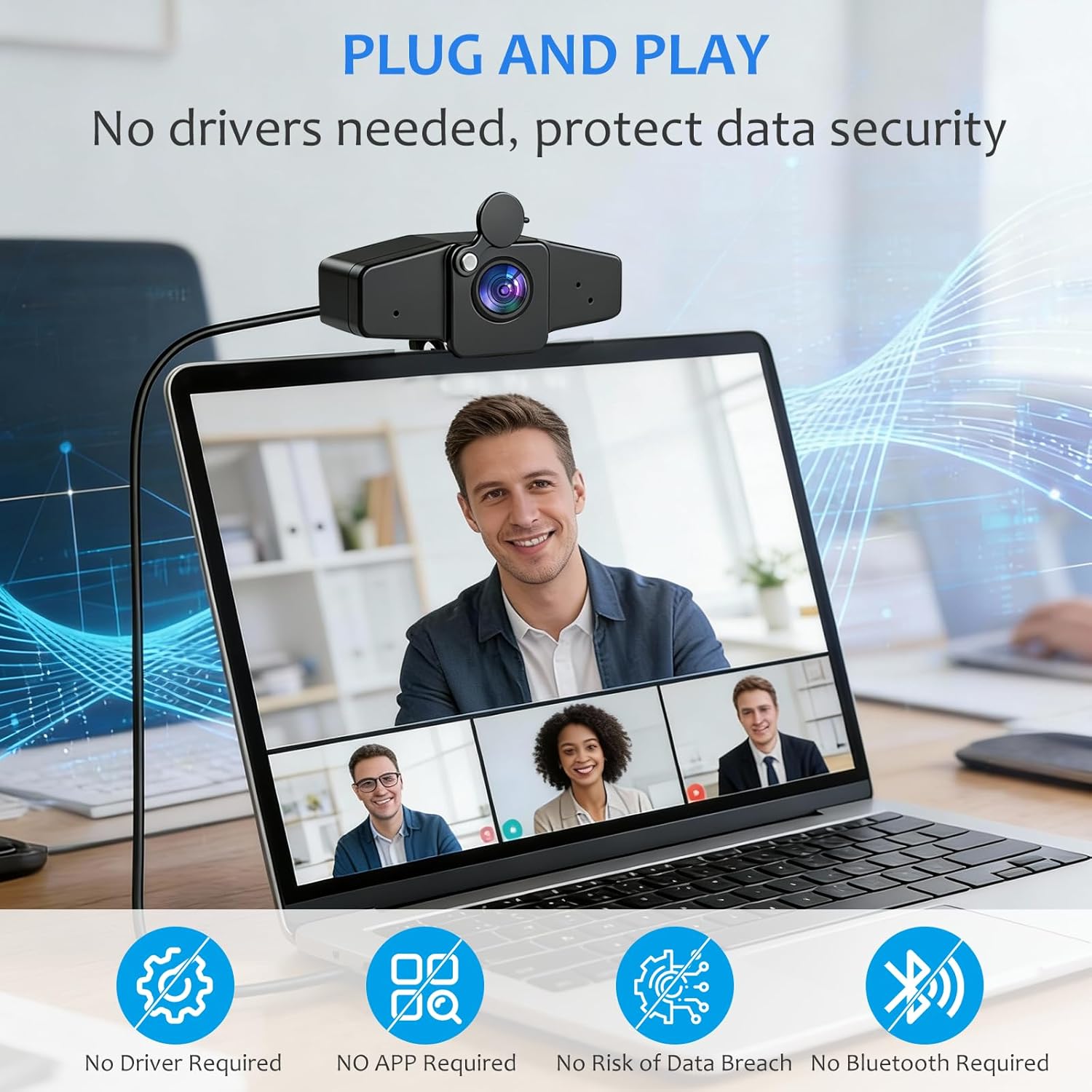 4K 30FPS Ultra HD & Smooth Frame Rates: This desktop computer camera delivering crystal-clear 4K resolution at 30FPS with smooth frame rates—every frame packed with detail. Equipped with an 8MP CMOS sensor, it boosts low-light sensitivity for clear, lag-free video during meetings. Whether joining online meetings, live streaming events, or taking virtual courses, enjoy exceptional image quality without distortion or lag.