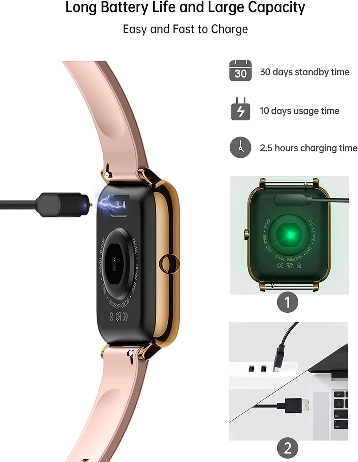 Popglory Smart Watch, Smartwatch with Blood Pressure, Blood Oxygen Monitor, Fitness Tracker