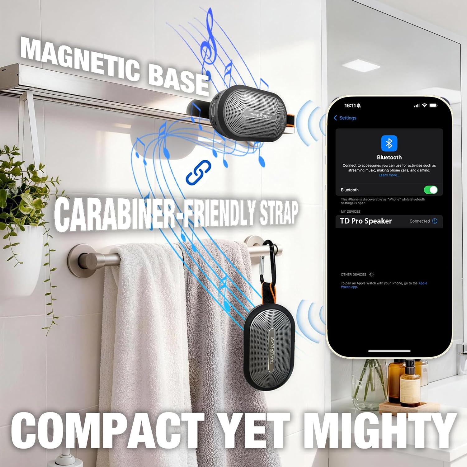 IP66 Resistant & Dustproof Protection: Built to withstand the elements, this portable bluetooth speaker Waterproof IP66 rating ensures resistance to powerful water jets, making this shower speaker perfect for outdoor adventures and poolside parties