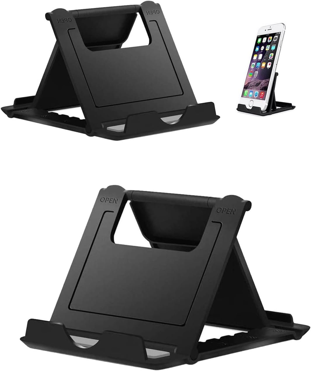 Portable Cell Phone Stand Holder for Desk, 【2 Pack】 Foldable Pocket-Sized Adjustable Mount, Universal Desktop Kickstand Compatible with iPhone, iPad, Kindle & Android Devices – Black & Black