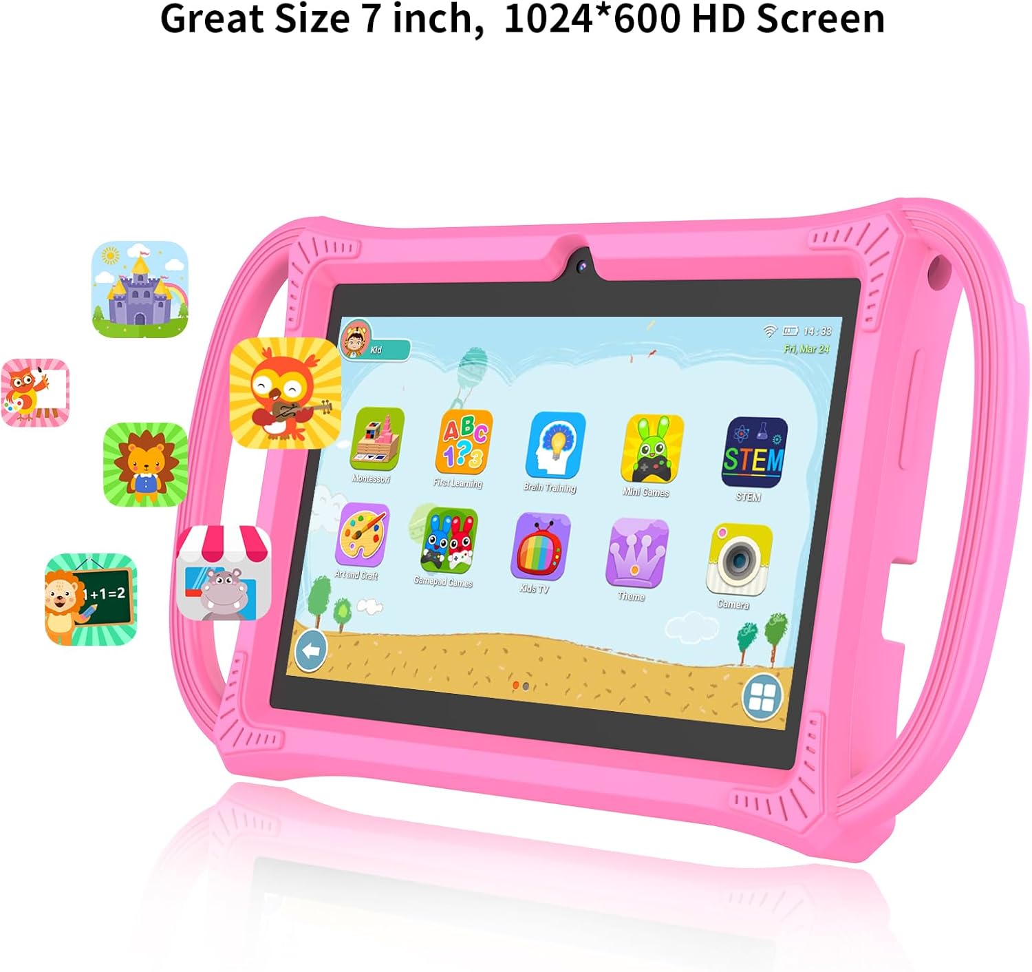 PRITOM Kids Tablets 7 inch, 32 GB, Toddler Tablet with Un-Zipped Case, WiFi, Dual Camera, Education, Games, Kids Software Pre-Installed, Parental Control, Pink