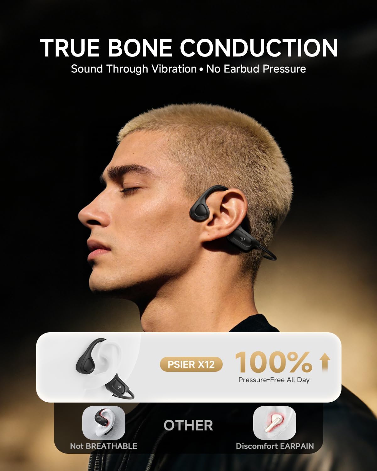 PSIER Bone Conduction Headphones, Bluetooth 6.0 Open Ear Headphones, 10Hrs Playtime Bluetooth Ear Buds Built-in Mic, IPX5 Waterproof, 23g Lightweight Running Headphones for Sport