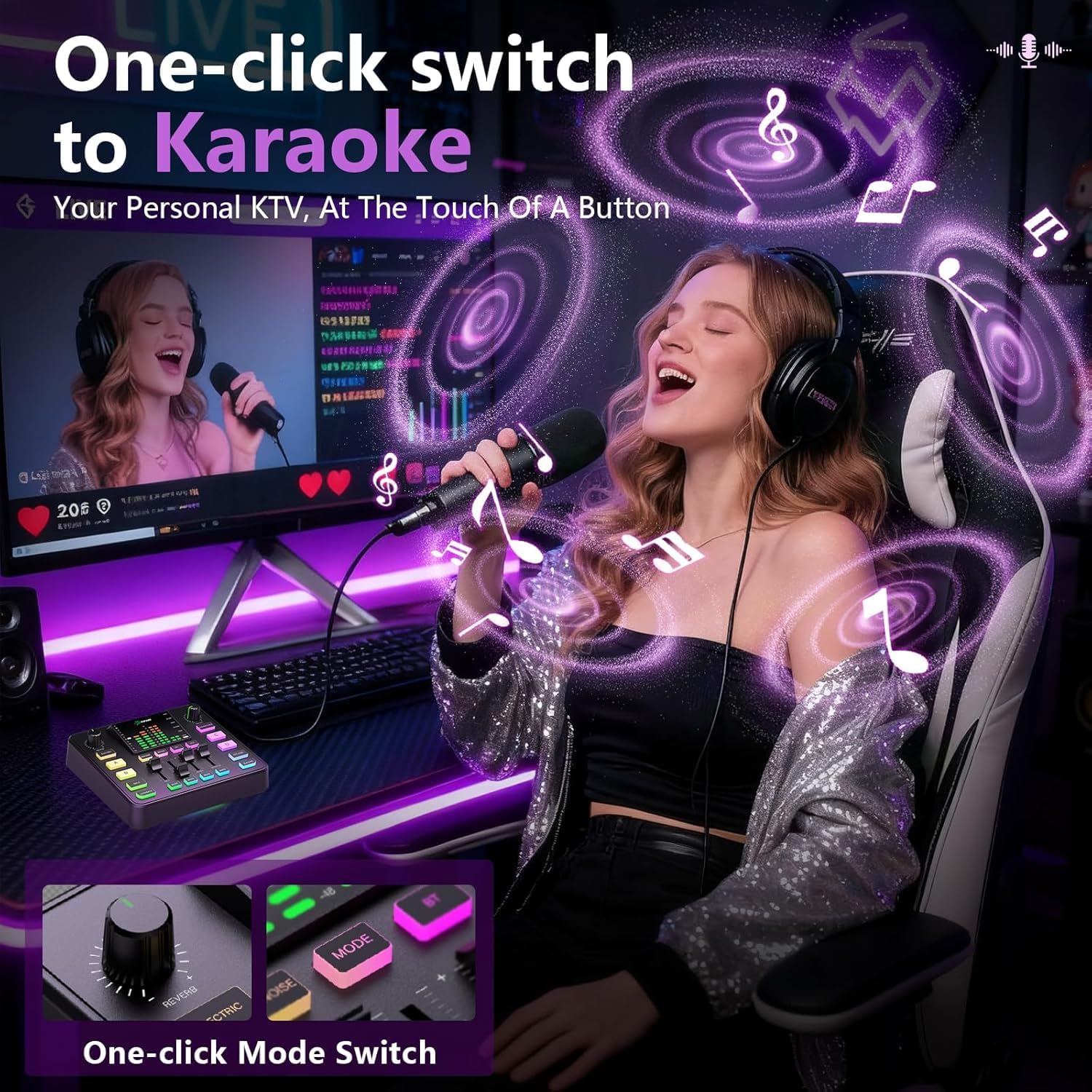 【Immersive RGB】A dedicated button allows you to instantly adapt to your live streaming theme. The mixer’s soft lighting is easy on the eyes, and you can freely switch between flowing and static lighting effects to create a visually stunning effect. Whether you’re immersed in gaming (even during loading), enhancing the immersion of your live stream, or using it as a video accessory, the full-range lighting effects will always match your style, lighting up every decisive moment and saying goodbye to monotony!
