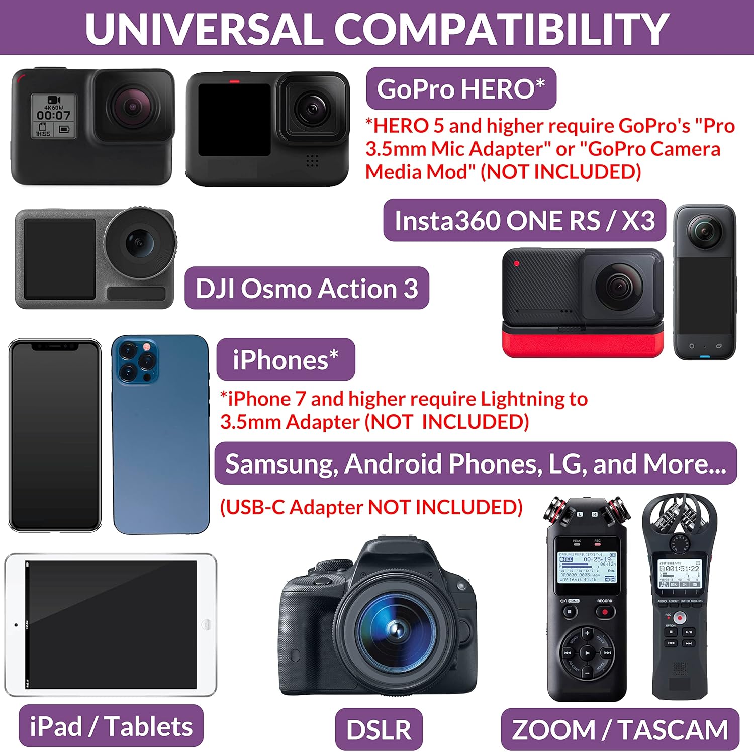 Universal Compatibility: Works with Android smartphones, iPhones, DSLR cameras, and other devices, ensuring a high-quality recording experience. Compatible with external microphone for tablet use, mobile microphones for filming, and gimbal-mounted setups.