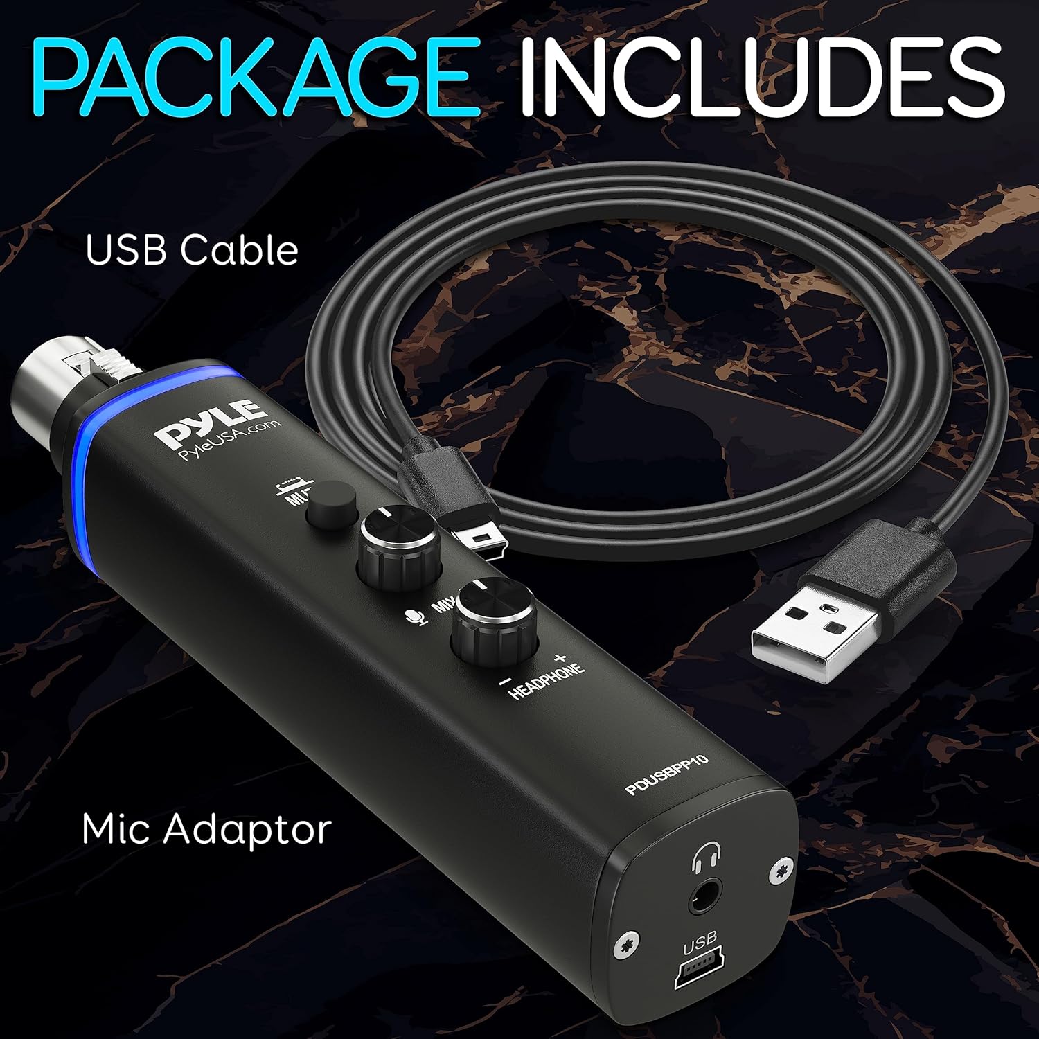 Pyle Microphone XLR-to-USB Signal Adapter – Universal Plug and Play XLR Mic to PC Adaptor for Digital Recording w/ Mix Audio Control, +48V Phantom Power, Headphone Volume, USB Cable – PDUSBPP10