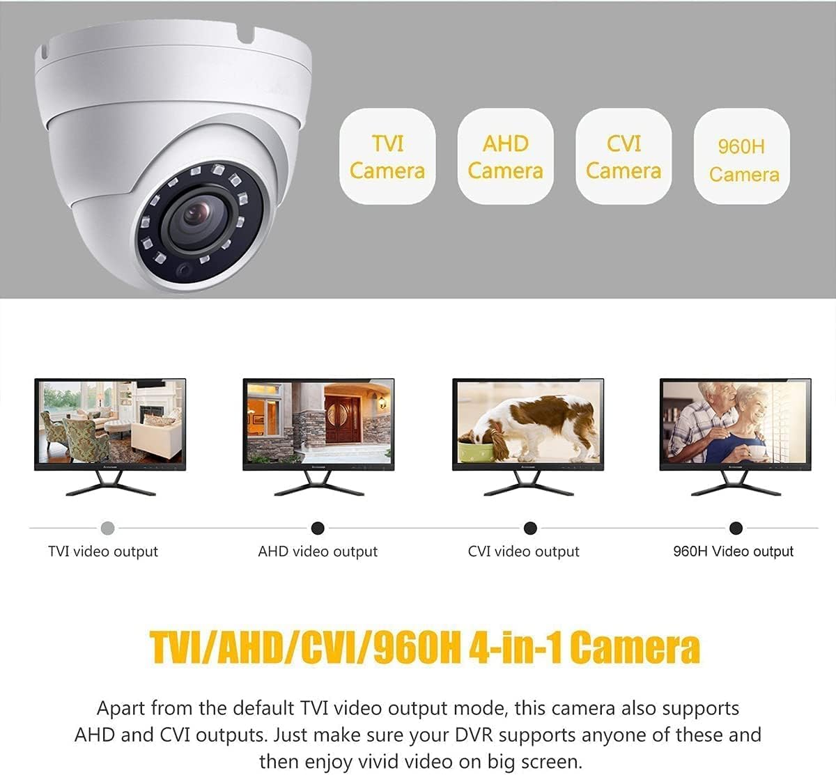 【Compatible with Most Brand CCTV System】- This camera supports 5MP HD-TVI, HD CVI, AHD and 960H 1000TVL. Video format can be switched according to your DVR type.