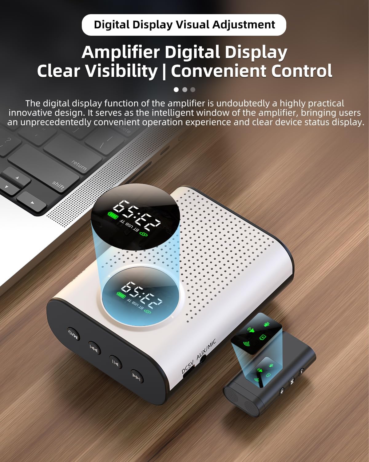 Versatile Playback & Easy Control: Beyond amplifying your voice, this device supports multiple playback modes: Bluetooth, TF card, USB drive, and AUX. The digital LED display shows volume, battery, and mode settings at a glance, making adjustments simple. It’s not just an amplifier—it’s a multi-functional audio tool for all your needs.