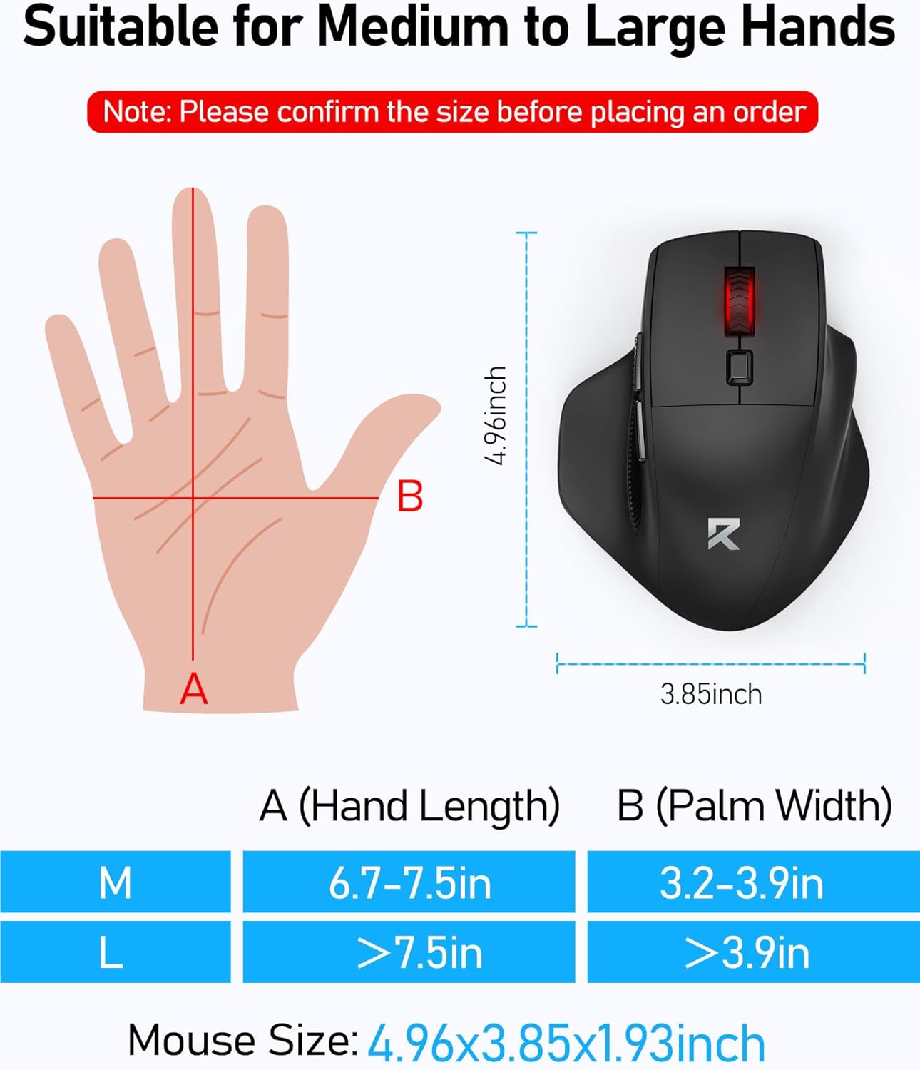 Redragon Big Wireless Mouse for Medium to Large Hands, 2.4GHz Ergonomic Computer Mouse, 6