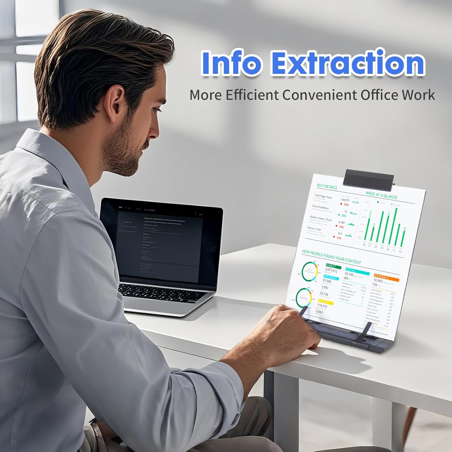 【Multifunctional Clamping System】Paper stand for desk when typing equipped with a page clamp and two bottom clips, it is convenient for securing papers of various sizes, improving file organization efficiency
