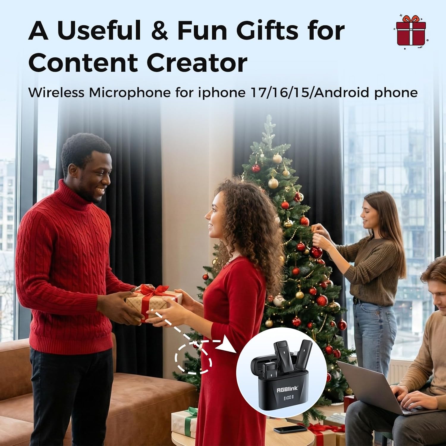 RGBlink Wireless Lavalier Microphone for iPhone 17,16,15 Pro Max, USB C Smartphone, Android – 2pcs Noise Canceling Wireless Clip on Lapel Mic for Recording Vlogging,Interview,Gifts for Content Creator