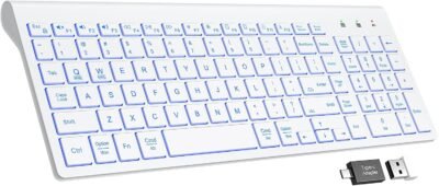 SABLUTE Wireless Keyboard with 7 Colored Backlits, Rechargeable Silent Compact Cordless