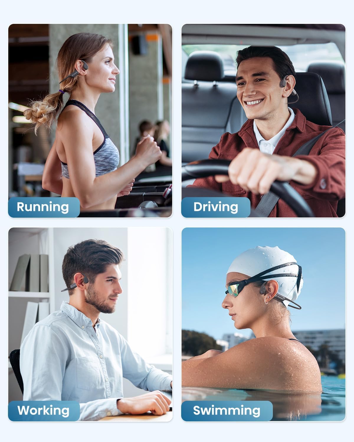 SAMVEK Bone Conduction Headphones IP68 Waterproof Swimming Headphones Open Ear Headphones with MP3 Mode 32GB Memory Up to 10 Hours Playtime Bluetooth 5.4 Ear Buds Secure Fit for Running and Fitness