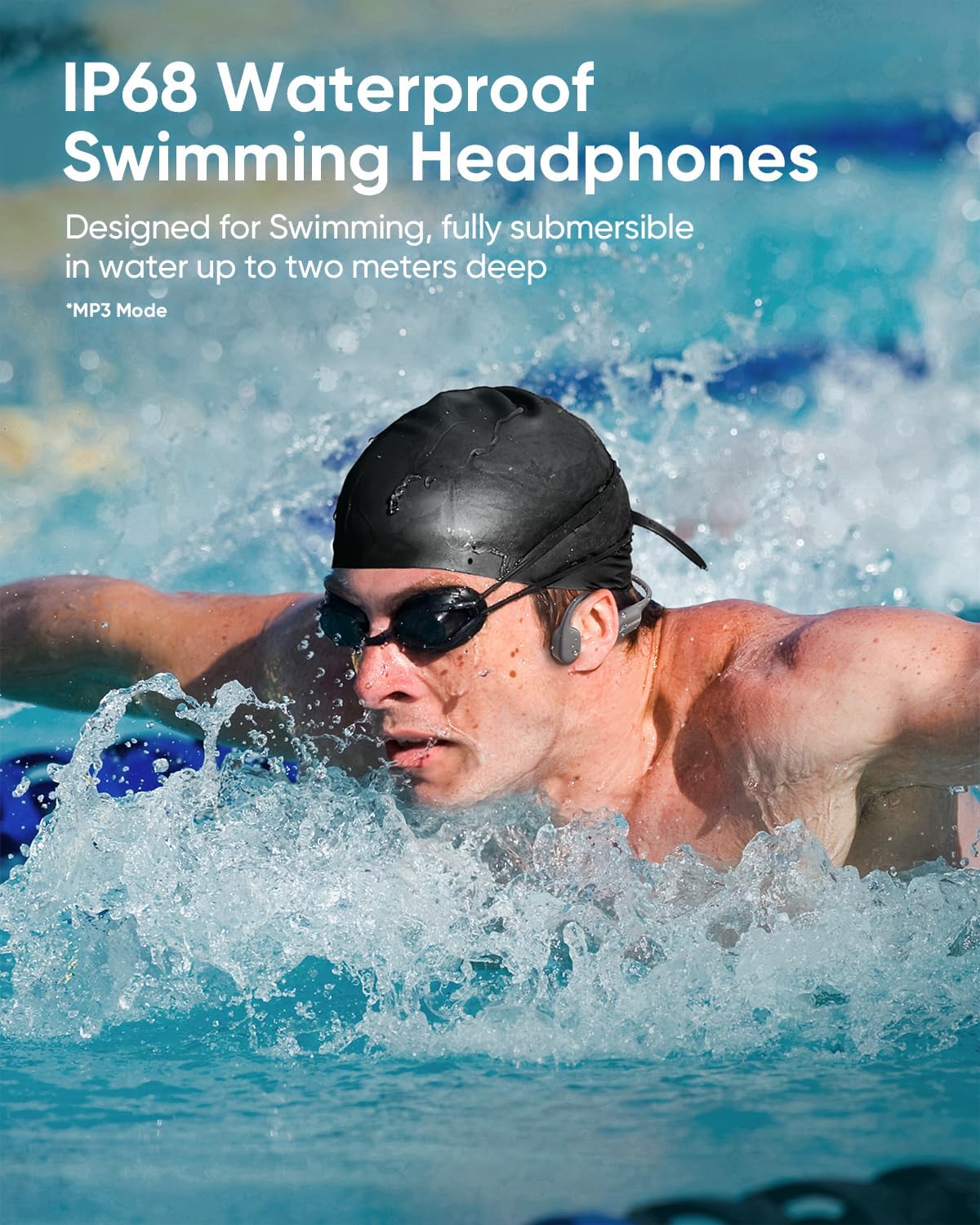 Bluetooth + MP3 Mode: underwater swimming headphones utilize Bluetooth 5.4 technology, ensuring zero latency and stable sound quality for a smooth listening experience. Furthermore, the headphones have built-in MP3 storage, capable of storing up to 6000 songs, allowing you to enjoy music without connecting to your phone. Easily switch between Bluetooth and MP3 modes with a simple double-tap.