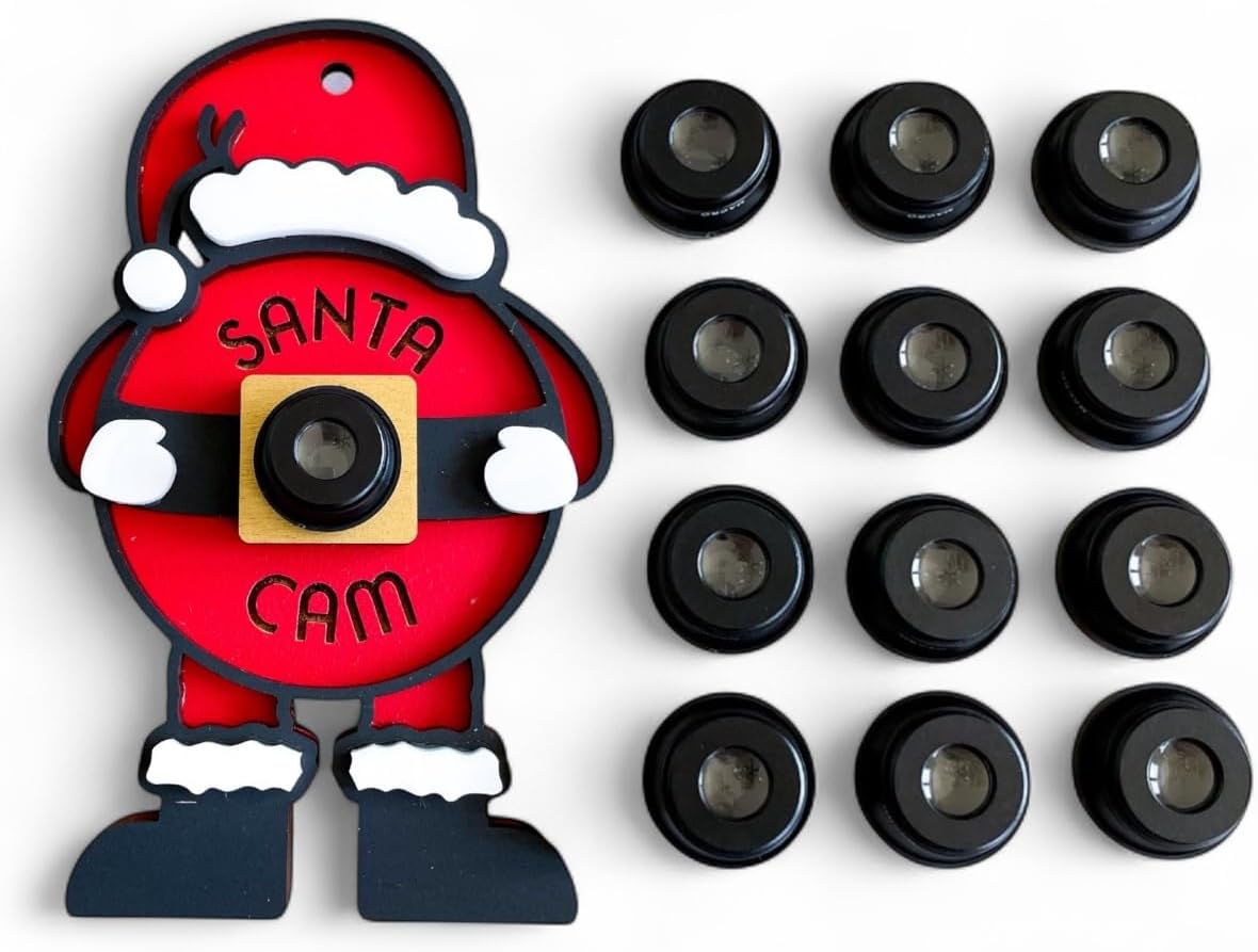 Bring a touch of holiday magic to your home with this Santa Cam Lens Kit, designed to look like a genuine security-camera lens. It’s the perfect finishing touch for Santa Cam and Elf Cam ornaments that “watch” children during the festive season. Each lens measures approximately 0.87″ in diameter, making it a seamless fit for most plastic or glass ornaments, wooden discs and laser-cut acrylic blanks. Simply attach it using your favorite adhesive such hot glue, permanent craft adhesive or even heavy-duty double-sided tape. Choose from packs of 5, 10, 25, 50 or 100 lenses to suit everything from small DIY projects to bulk holiday crafting. Whether you’re making one special Santa Cam for your tree or hundreds for craft fairs and gift shops, these lenses offer the perfect balance of realistic appearance and light weight.