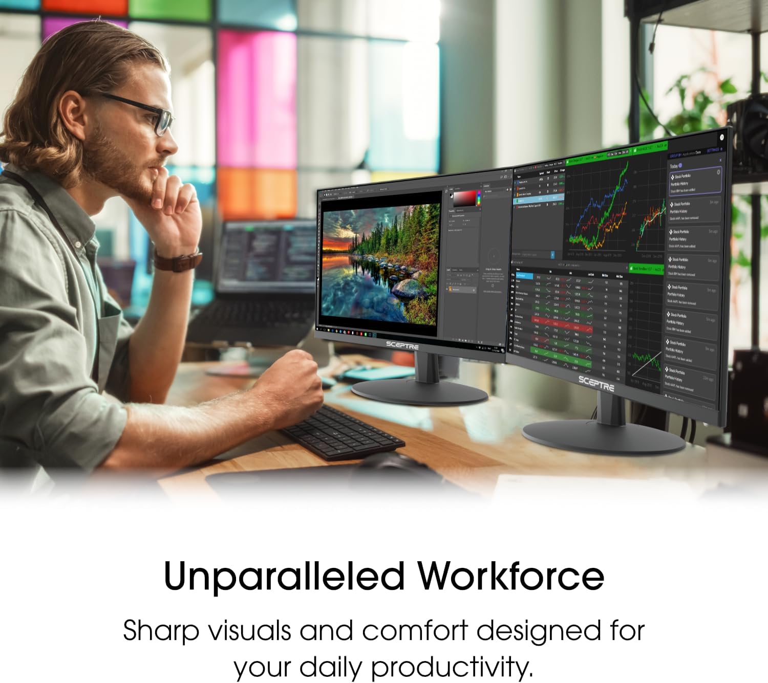 【WIDEN YOUR PERSPECTIVE】Our sleek minimal bezel design ensures undivided attention. The nearly bezel-free display seamlessly connects in a dual monitor arrangement, delivering an unobstructed view that lets you focus on more at once, completely distraction-free.