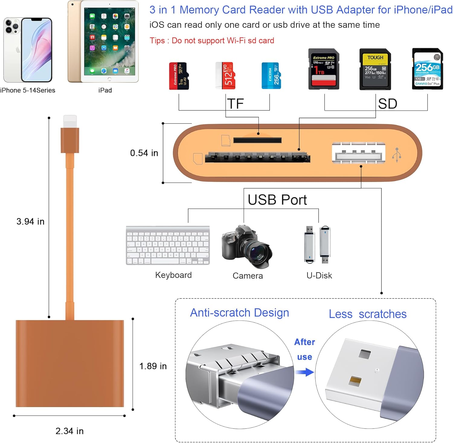 Tips: Not compatible with iPhone or iPad, this card reader uses a USB-C connector ( NOT lightning port ).