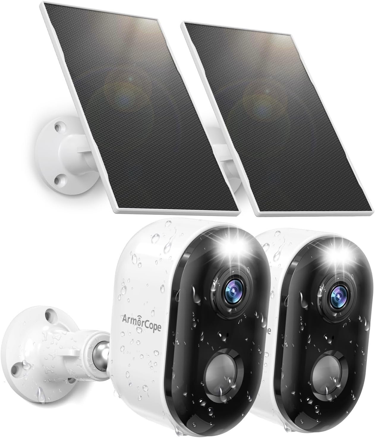 Security Cameras Wireless Outdoor, Solar Battery Powered 2k Color Night Vision, AI Motion Detection, IP66 Weatherproof, 2-Way Talk, SD/Cloud Storage, 2.4Ghz WiFi Cameras for Home Security (2 Pack)