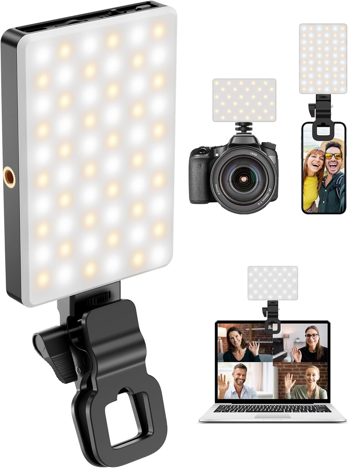 Selfie Light for iPhone:3000mAh Phone Light Clip with 120 LEDs & CRI95+, Compatible with iPhone/Laptops/Tablets/Cameras for Video Recording/Selfies/Live Streaming/Zoom/YouTube