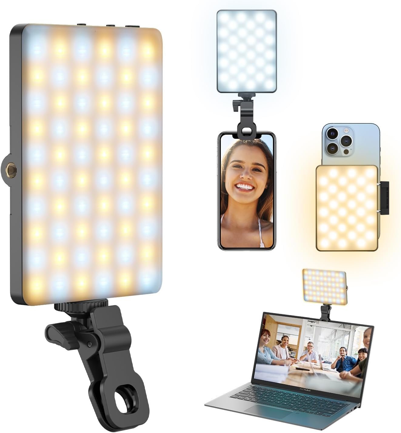 Selfie Light for Phone, 60 LED Phone Light with Rechargeable Clip and Adjusted 3 Light Modes, 2000mAh Video Light for iPhone iPad, Laptop, Makeup, TikTok, Selfie, Vlog, Video Conference