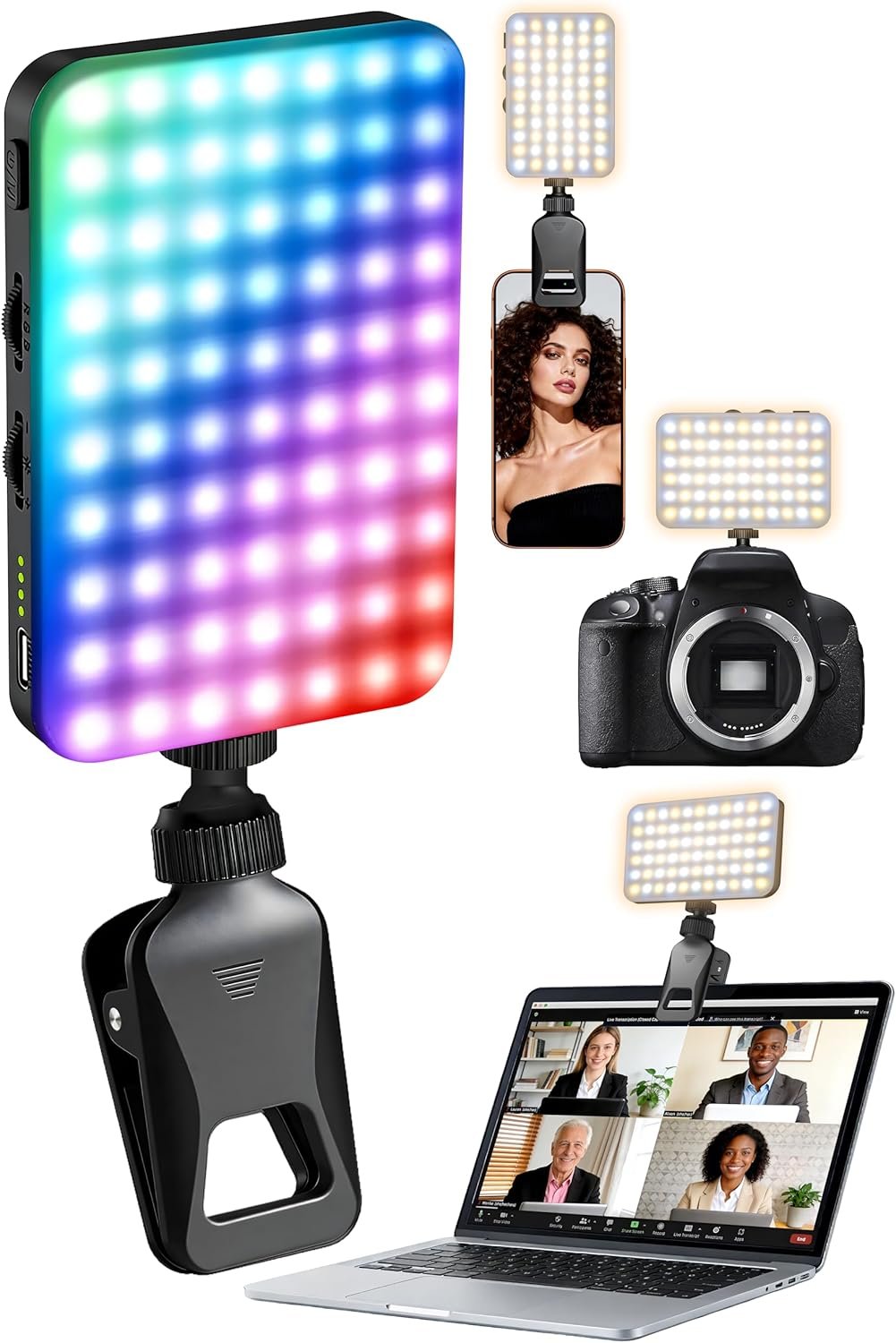 RGB color adjustment and portable selfie light video conference lighting with clip enhance your selfies, makeup, tiktok videos, zoom calls, and content creation for phones, laptops, and tablets