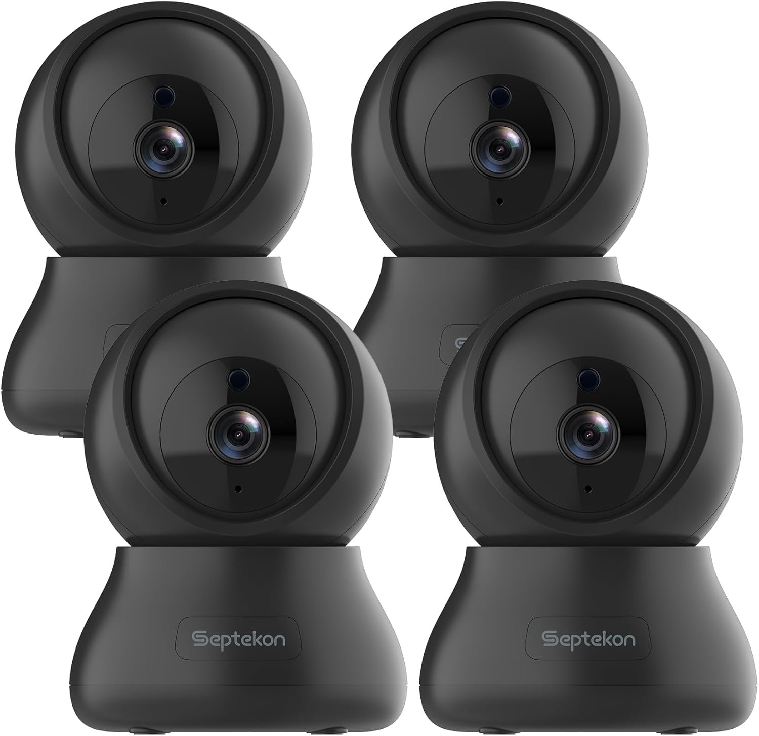 Septekon Security Cameras Indoor, 2K Wired Cameras for Home Security with Night Vision, 2-Way Audio, Motion Detection, Compatible with Alexa (4 Pack), Black