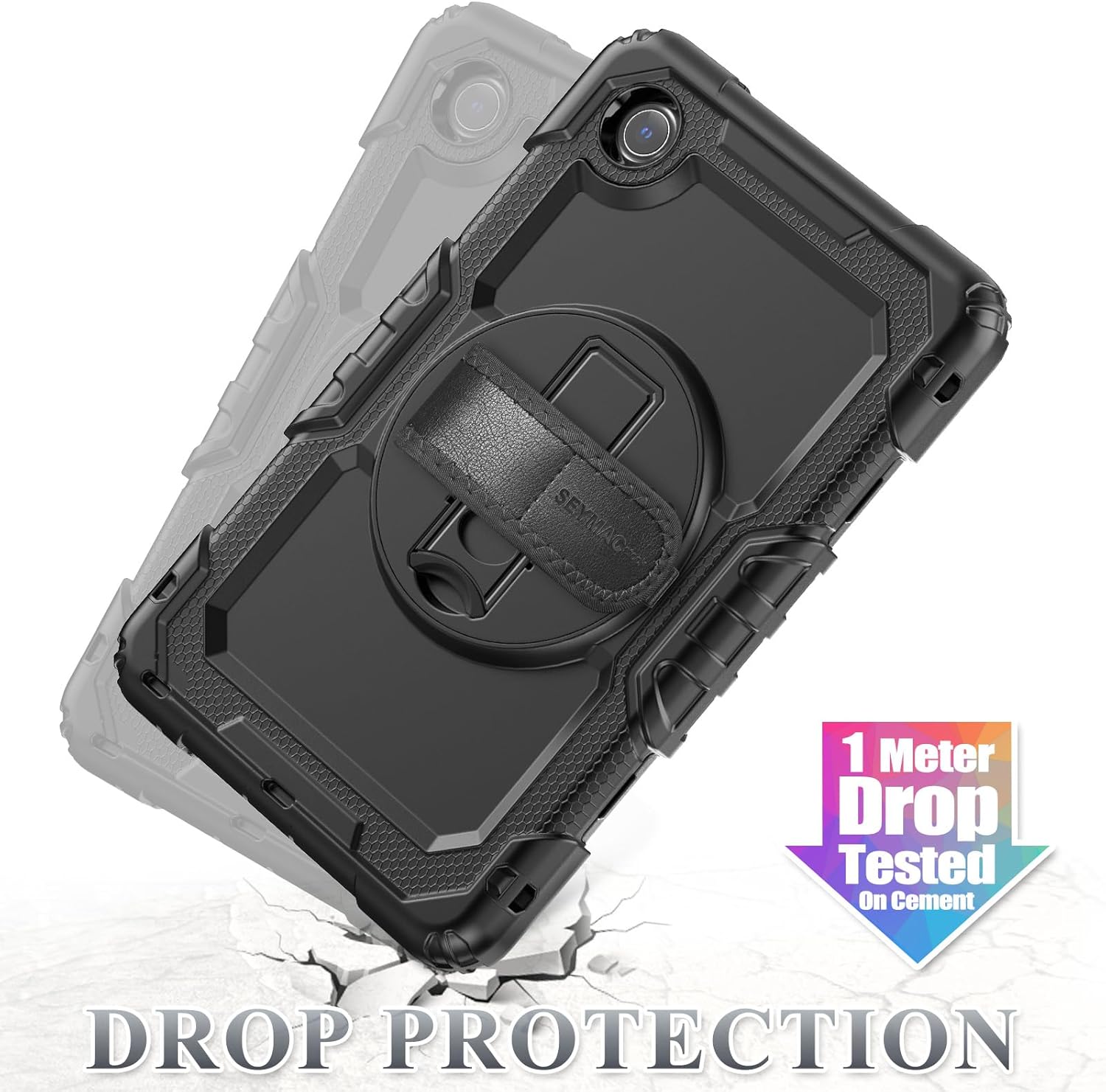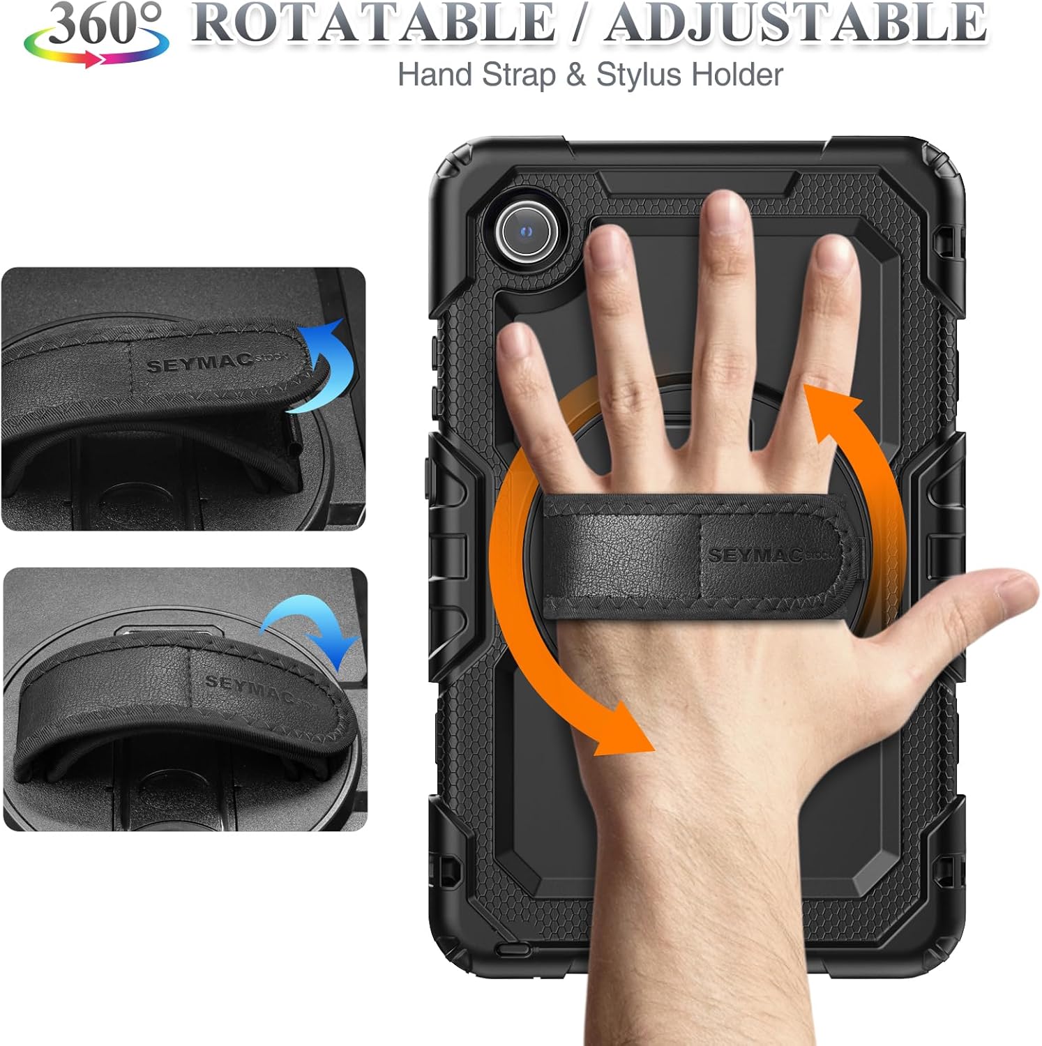 SEYMAC stock Tablet Case for Lenovo Tab One (TB305FU) 8.7 inch Drop-Proof Protection Cover with 360° Rotate Stand & Strap [Pen Holder] & Screen Protector/K9 2025, Black