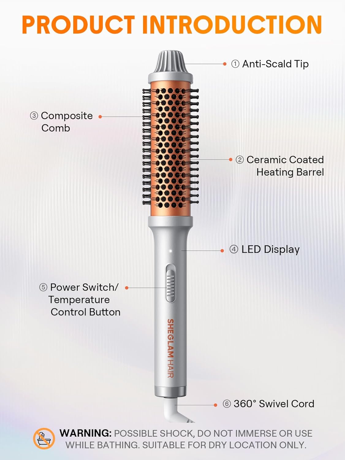 【Dual-Temperature Design for Versatile Styling】 With 2 temperature levels, this brush suits all hair types (fine/coarse: level 2; medium: level 1). Perfect for straightening, vertical curls, or horizontal waves, it adapts to diverse styling needs.