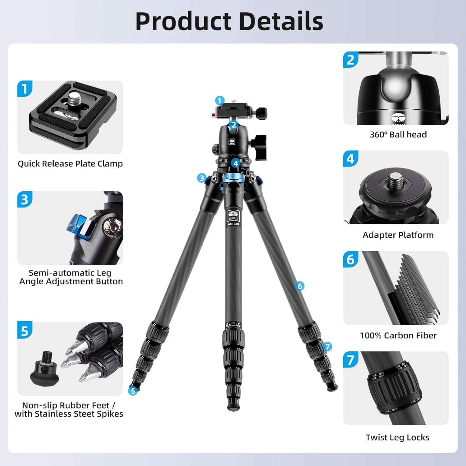 [Strong Yet Feather-Light]-Crafted from premium carbon fiber, offering ultimate durability and shock resistance while remaining ultra-light — ideal for travel photographers and vloggers.