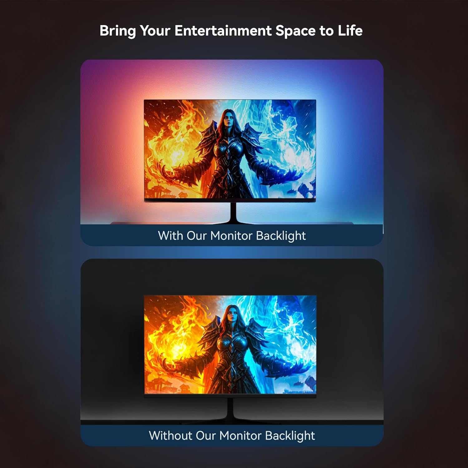 Triple-Sided Color Matching:The gaming light strip is perfectly sized for a 27-inch display, capturing color changes across the screen to create a full-spectrum lighting effect that elevates your visual experience