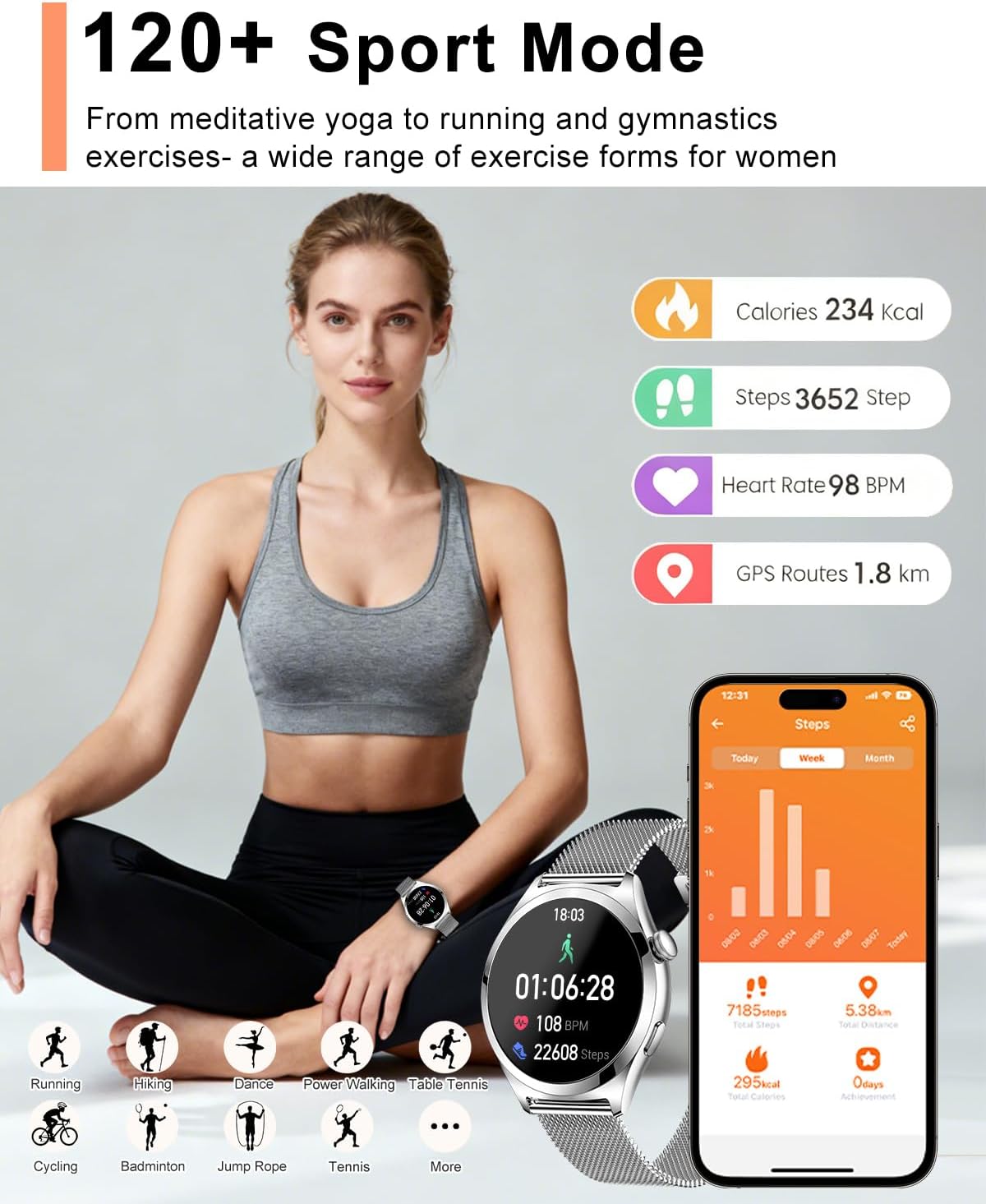 Smart Watches for Women, 1.27″ TFT Touchscreen Smartwatch Answer/Make Call, Activity Fitness