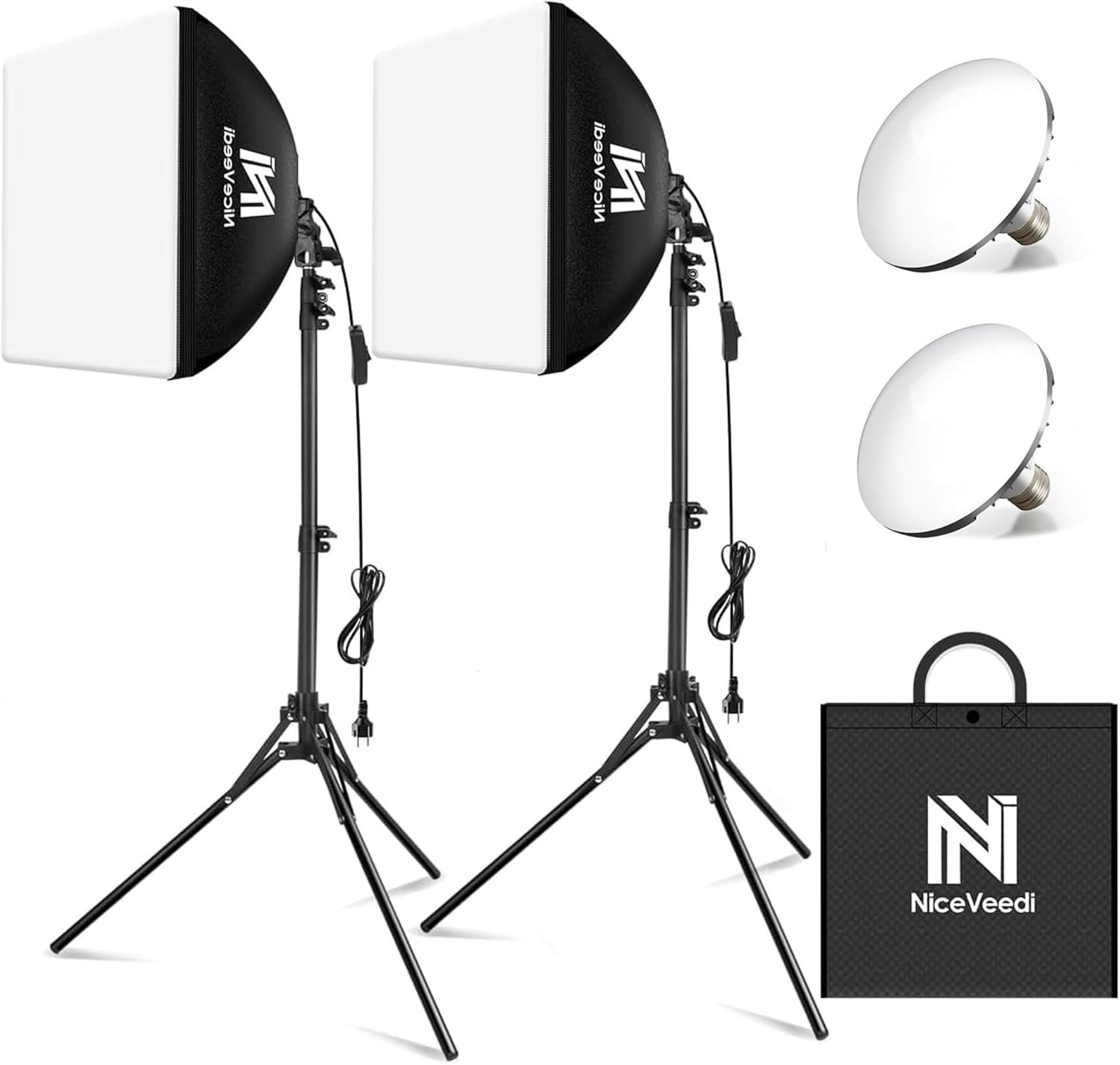 Softbox Lighting Kit, NiceVeedi 2-Pack 16” x 16” Softbox Photography Lighting Kit with 63” Tripod Stand & 5400K 450W Equivalent LED Bulb, Continuous Lighting for Photography/Video Record