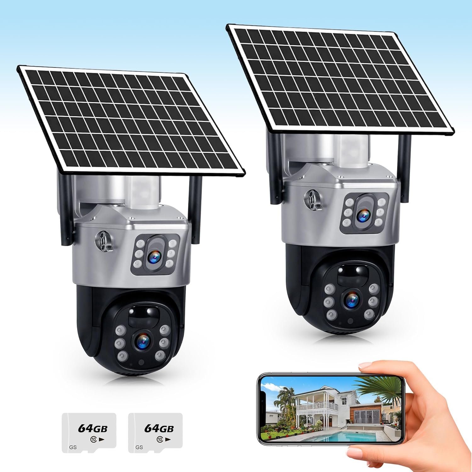 Solar Security Camera Outdoor Wireless WiFi-6MP HD, Color Night Vision,10X Zoom,AI Motion Detection,Two-Way Audio,Waterproof IP66,64GB SD/Cloud Storage,7.5W Solar Panel(2pack)