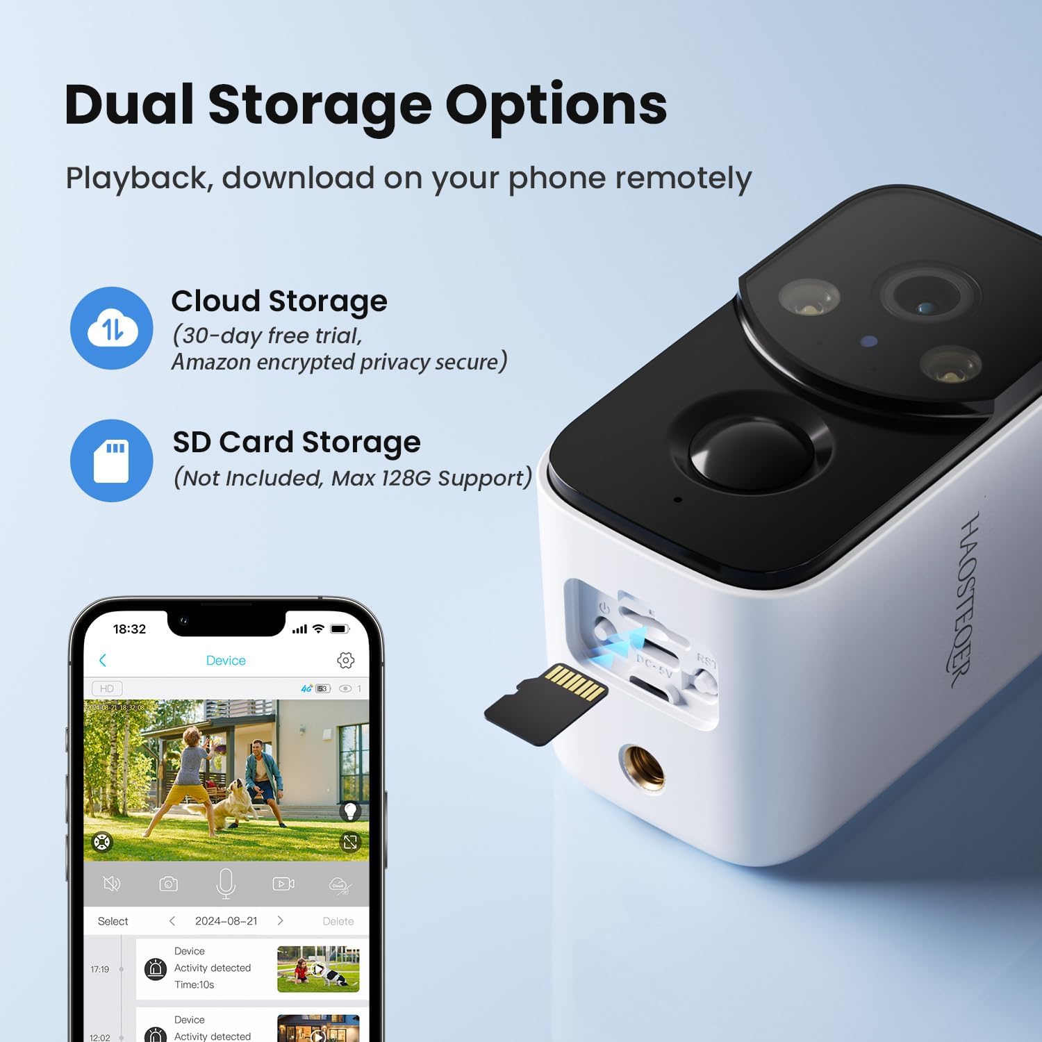 SD Card Storage: Supports local SD card storage(not included, up to 128GB)