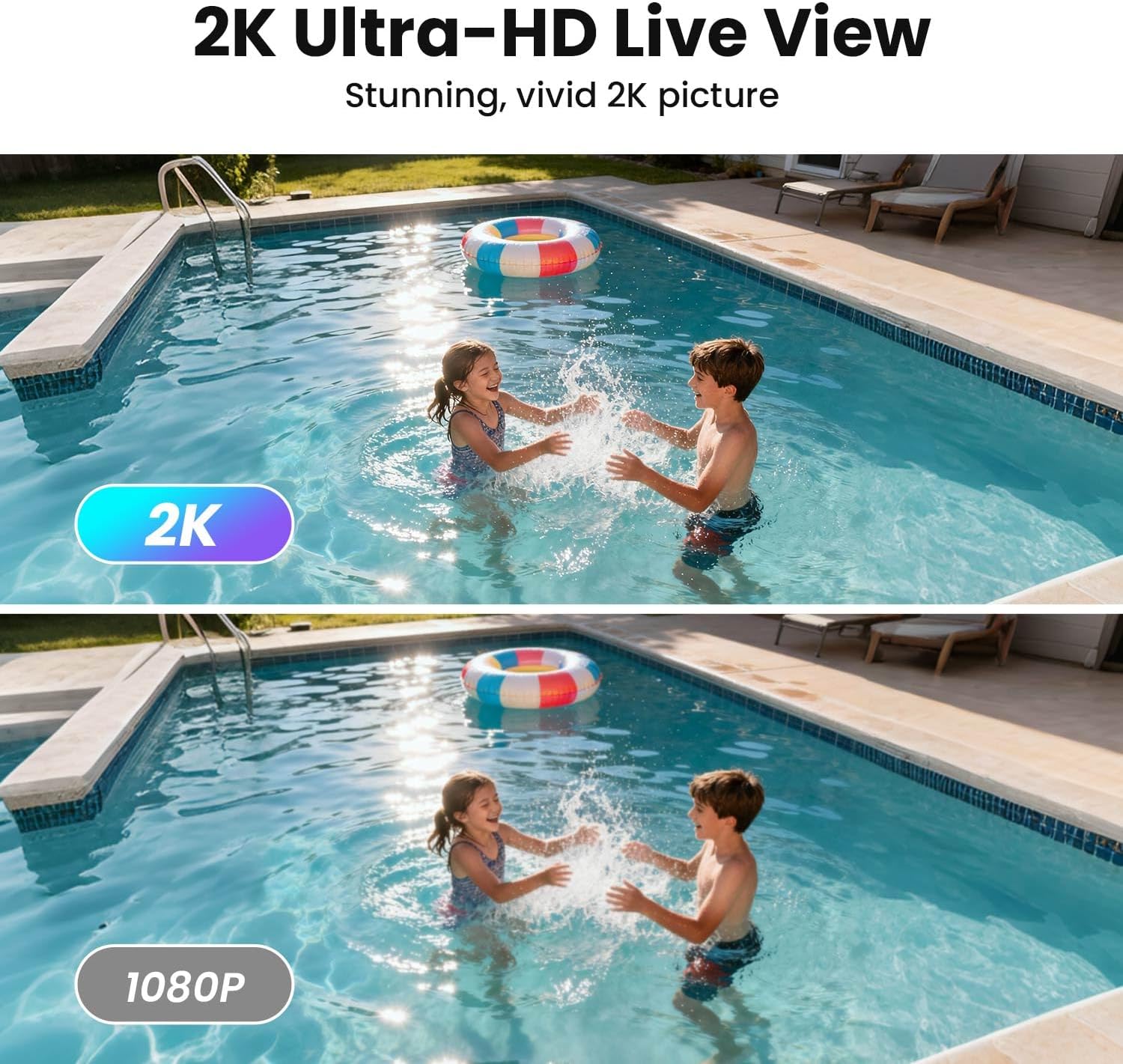 2K Ultra HD Clarity for Day and Night: Experience 2K UHD resolution and 4X zoom for sharper details and enhanced clarity. With advanced full-color night vision, the outdoor solar camera captures clear and colorful images up to 50ft, even in deep darkness.