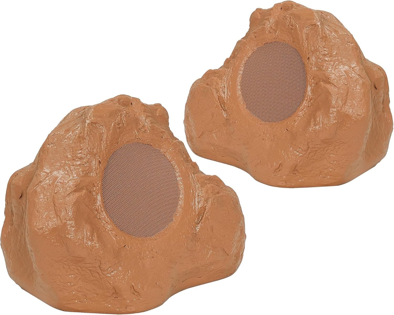 Sound Town Pair of 2-Way 6.5″ High-Fidelity Outdoor Weatherproof Rock Landscape Speakers, 70V/100V/8Ω, Commercial Installation for Garden, Yard, Deck, Brown (ROCK-62BR-PAIR)