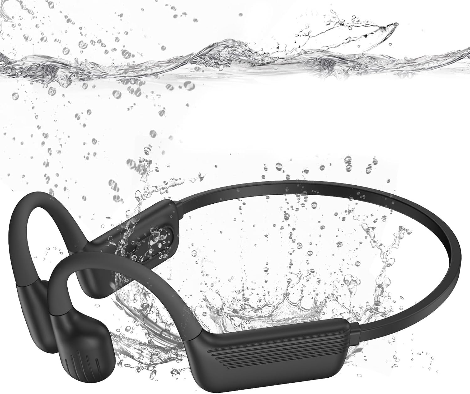 Swimming Headphones-Bone Conduction Headphones, IP68 Waterproof Open Earphones, LiteSurge Bluetooth 5.4 Underwater Sport Earbuds with 32 GB MP3 Memory for Swimming, Marathon-Black